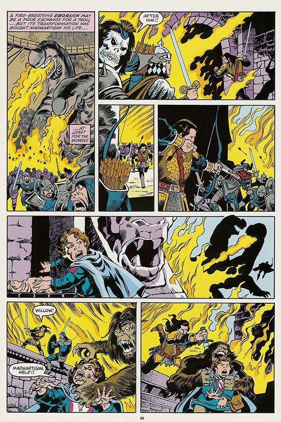 ...trapped by the soldiers of the evil sorceress Queen Bavmorda, inept, but charming and inadvertently heroic swordsman Madmartigan seems doomed!